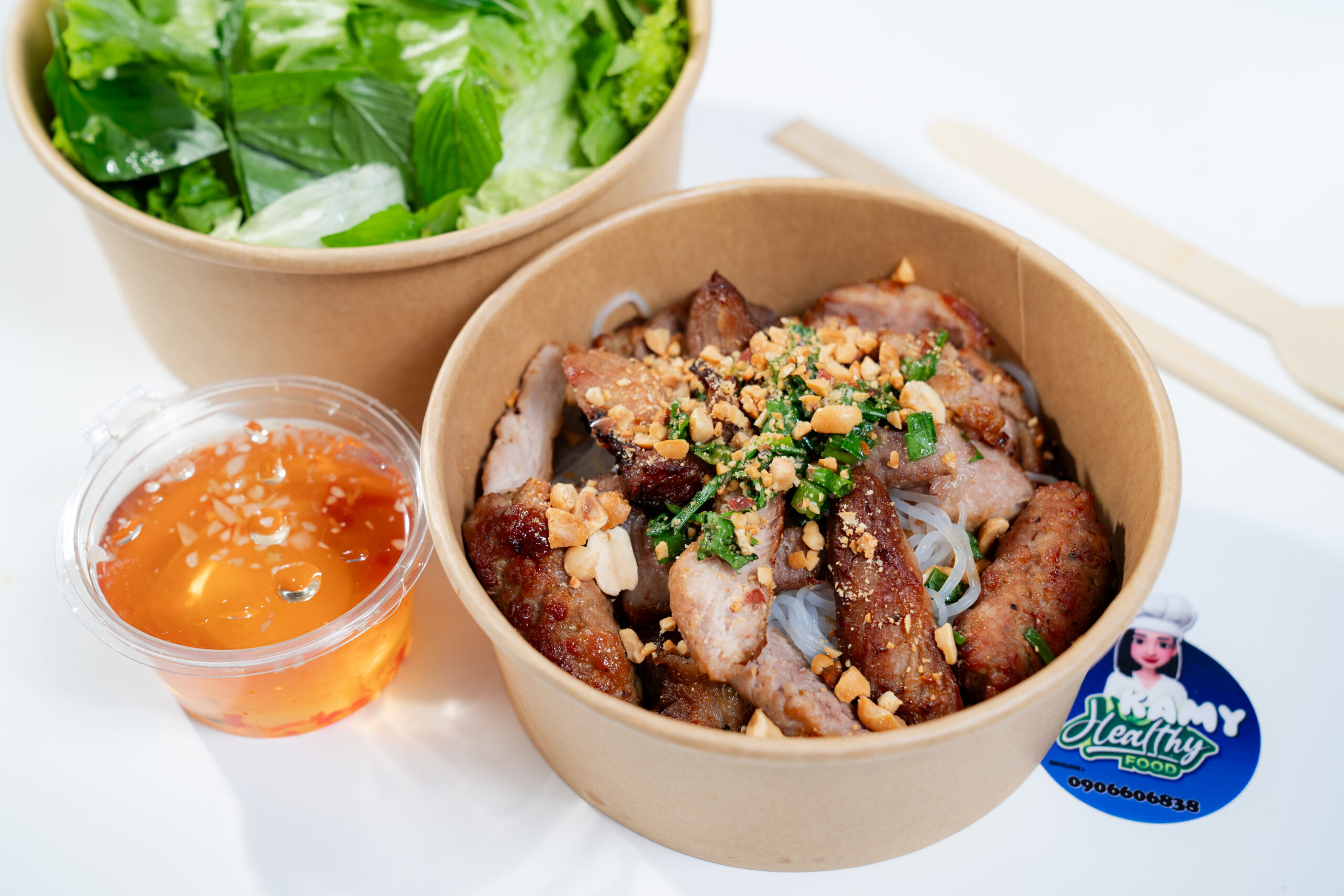 Bún Nưa Thịt Nướng thơm ngon, ít calo với bún nưa (konjac) dai mềm, giàu chất xơ thay thế cho bún gạo truyền thống. Thịt nướng được tẩm ướp nhẹ nhàng, áp chảo ít dầu kết hợp cùng rau tươi và nước chấm thanh đạm, giúp bạn ăn ngon mà vẫn giữ dáng.